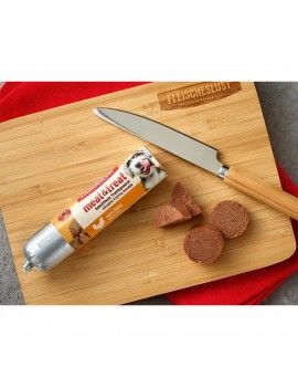 Le snack pour chiens Fleischeslust est un produit élaboré principalement avec des ingrédients de haute qualité, incluant poulet comme source principale de protéines, complété par une composition équilibrée en graisse, fibres et cendres, garantissant un apport nutritionnel adapté au bien-être de votre animal. Présenté en une formulation pratique de 160 grammes, il est conçu spécifiquement pour être utilisé comme récompense ou incitation lors de l’entraînement, facilitant la manipulation et la découpe grâce à sa texture caractéristique de saucisse de volaille. De plus, ce snack est fabriqué sans ajout de arômes, colorants ni conservateurs artificiels, assurant un produit naturel et sûr pour la consommation régulière des chiens. La présence de fibres contribue au bon fonctionnement digestif, tandis que la graisse fournit l’énergie nécessaire à l’activité quotidienne de l’animal. Ce snack pour chiens se positionne comme une option fonctionnelle et saine dans sa catégorie, adaptée à l’entraînement et au renforcement positif avec des ingrédients favorisant la santé générale du chien. En résumé, le snack pour chiens Fleischeslust combine une formulation équilibrée et naturelle avec un format pratique pour récompenser et prendre soin de votre animal au quotidien.