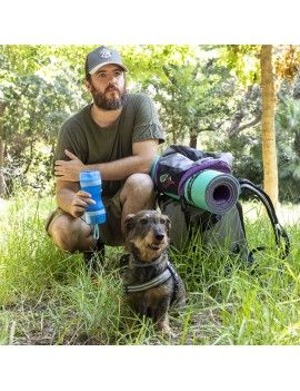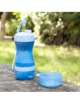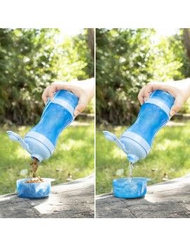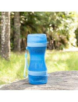 Un récipient original et pratique pour l'eau et la nourriture en forme de bouteille, très utile pour donner facilement à boire et à manger aux animaux de compagnie, à tout moment et en tout lieu. Son intérieur est divisé en deux parties distinctes, l'une pour l'eau et l'autre pour la nourriture. En outre, les deux couvercles servent de bols pour servir l'eau et la nourriture à l'animal. Il est facilement démontable et nettoyable et son joint en silicone empêche les fuites et les déversements. Grâce à sa conception portable innovante avec cordon de suspension, il peut être transporté confortablement dans un sac à dos, un petit sac ou au niveau du poignet lors de promenades, d'excursions, de voyages, etc.