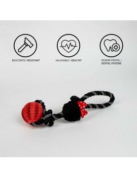 Le jouet pour chiens de la marque Minnie Mouse est un accessoire conçu pour offrir divertissement et durabilité lors du jeu des animaux de compagnie. Fabriqué avec une combinaison de matériaux résistants et sûrs, ce produit intègre du polyester, du coton et du TPR (caoutchouc thermoplastique), garantissant une structure solide et flexible capable de supporter la force naturelle des chiens lorsqu’ils mordent et tirent. Son design principal est une corde de couleur rouge vif, adaptée aux jeux de traction et de mordillement qui favorisent l’activité physique et la stimulation mentale des chiens. Ce type de jouet est idéal pour les chiens, encourageant l’interaction entre l’animal et son propriétaire, tout en aidant à maintenir une bonne santé dentaire grâce à un nettoyage doux des dents pendant le jeu. La fabrication en Chine assure un produit alliant fonctionnalité et qualité adaptée à sa catégorie, offrant résistance et adaptabilité à différentes races et tailles de chiens. Ce jouet se distingue par son confort, sa sécurité et son aspect ludique, parfait pour le bien-être et le divertissement quotidien des animaux de compagnie. En résumé, il représente une option pratique parmi les jouets canins qui privilégient la résistance et une expérience de jeu active.