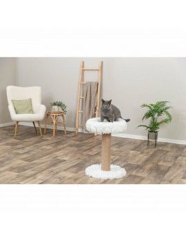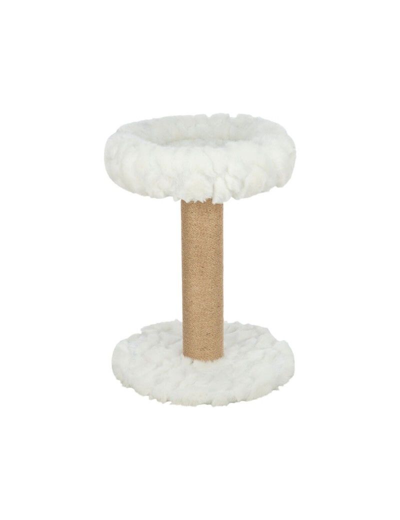 Le griffoir pour chats Mirella de la marque Trixie est une solution pratique et fonctionnelle pour le soin et le divertissement de votre chat domestique. Ce produit combine habilement des matériaux offrant durabilité et confort, avec une surface en jute de 5 mm d’épaisseur, un matériau naturel particulièrement résistant qui permet aux félins d’aiguiser leurs griffes sans abîmer les meubles. Il dispose également d’une plateforme rembourrée en polyester pelucheux compact (500 g/m²), offrant un espace confortable pour le repos de l’animal, intégrant ainsi griffoir et couchage en un meuble compact. Son design en couleur blanche apporte une finition propre et moderne, adaptable à différents styles de décoration. Avec des dimensions d’environ 50 cm de diamètre pour la zone de grattage et 68 cm de hauteur, ce griffoir assure stabilité et espace suffisant pour que des chats de tous âges et tailles puissent l’utiliser facilement. L’association du polyester et du jute garantit non seulement une bonne résistance à l’usure, mais facilite aussi l’entretien et l’hygiène du produit. En résumé, le griffoir Mirella répond aux besoins essentiels des chats en stimulant leur instinct naturel de griffer tout en leur offrant un lieu confortable pour se reposer, faisant de lui un accessoire indispensable pour les foyers soucieux du bien-être félin et de la préservation des meubles.