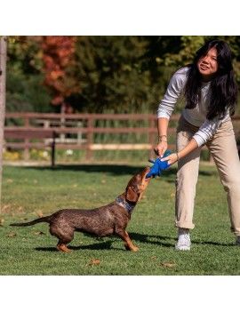 Le peluche pour chiens Stitch est un jouet pour chiens conçu pour divertir les animaux à partir de 3 ans. Fabriqué en plastique résistant, il se distingue par sa durabilité face aux morsures et à l’usage quotidien, garantissant une longue durée de vie même avec des chiens actifs. Sa couleur bleue lui donne un aspect attrayant et facilement visible pour l’animal, facilitant le jeu en intérieur comme en extérieur, notamment pendant la saison estivale. Ses dimensions approximatives de 13 x 9 x 24 cm en font un peluche adapté aux chiens de petite et moyenne taille, permettant une prise facile en bouche et un lancer pour des jeux interactifs comme aller chercher la balle. Originaire de Chine, ce jouet allie fonctionnalité et design simple, répondant aux besoins essentiels des chiens pour maintenir leur activité physique et mentale, favorisant un exercice sûr et ludique. Sa structure en plastique empêche l’absorption d’humidité ou de saleté, facilitant un nettoyage rapide, un atout apprécié par les propriétaires pour maintenir l’hygiène durant le jeu. En résumé, le peluche Stitch est un accessoire pratique et efficace dans la catégorie des jouets canins, adapté aux routines de jeu et de stimulation des animaux de plus de trois ans, combinant simplicité, robustesse et fonctionnalité dans un format attrayant et confortable.