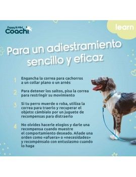 La laisse d'éducation pour chiots de Coachi est une solution idéale pour apprendre à un chiot ou à un nouveau chien comment se comporter à la maison. Elle permet de mettre fin aux comportements indésirables et facilite l'éducation des chiots. Cette laisse légère est utilisée à la maison pour interrompre les comportements indésirables d’un chiot sans confrontation ni malentendu. Utilisez simplement la laisse pour garder le contrôle. Par exemple, le tenir en laisse pour éviter les sauts est un moyen idéal pour accueillir de nouveaux visiteurs ou l’arrivée de quelqu’un à la porte. Conçue pour interrompre les comportements tels que le chapardage et le fait de s’asseoir sur les meubles, il suffit d’utiliser la laisse pour éloigner le chien des endroits indésirables et reconduire son comportement. La laisse vous permet d’interrompre les comportements indésirables de votre chiot et de le rediriger vers des activités plus positives. La gamme Coachi a été créée par les experts de Company of Animals. Elle est conçue pour promouvoir des méthodes efficaces, respectueuses et positives, rendant l'éducation simple et gratifiante pour les maîtres et leurs chiens.